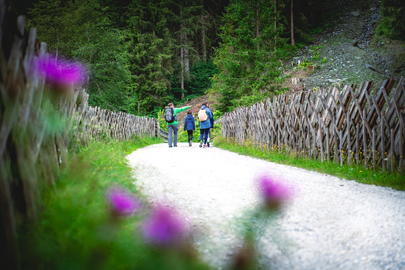 Im angrenzenden Fichtenwald finden Wintergoldhähnchenund Tannenmeisen ihren idealen Lebensraum. An schroffen, feuchten Felsen gedeihen gelbe Leuchtflechten. Schautafeln bieten zahlreiche Informationen über die biologischen und ökologischen Zusammenhänge im und am Bach. Alte Lesesteinmauern säumen den Weg vor der Wirtsalm und zeugen von der historischen bäuerlichen Bewirtschaftung. Im Bereich der Senningerbräualm (1.187 m) öffnet sich das Tal zu einer weitläufigen Almenlandschaft.
