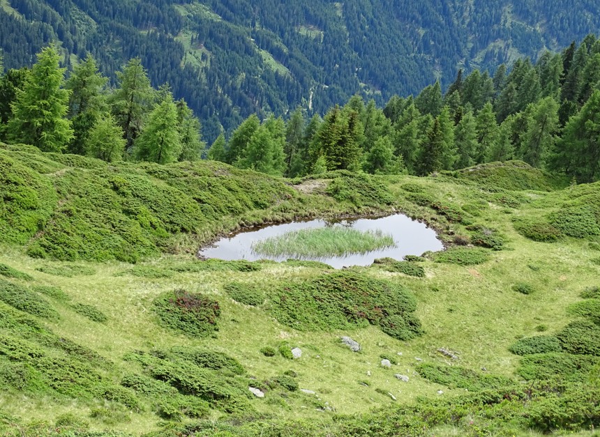 Tags darauf führt der Weg ein Stück weit gleich zurück wie der Zustieg am Vortag und zweigt dann taleinwärts Richtung Lienzer Hütte (Zinkeweg). Sonnseitig gelegen ergeben sich zahlreiche Beobachtungsmöglichkeiten in Flora und Fauna.