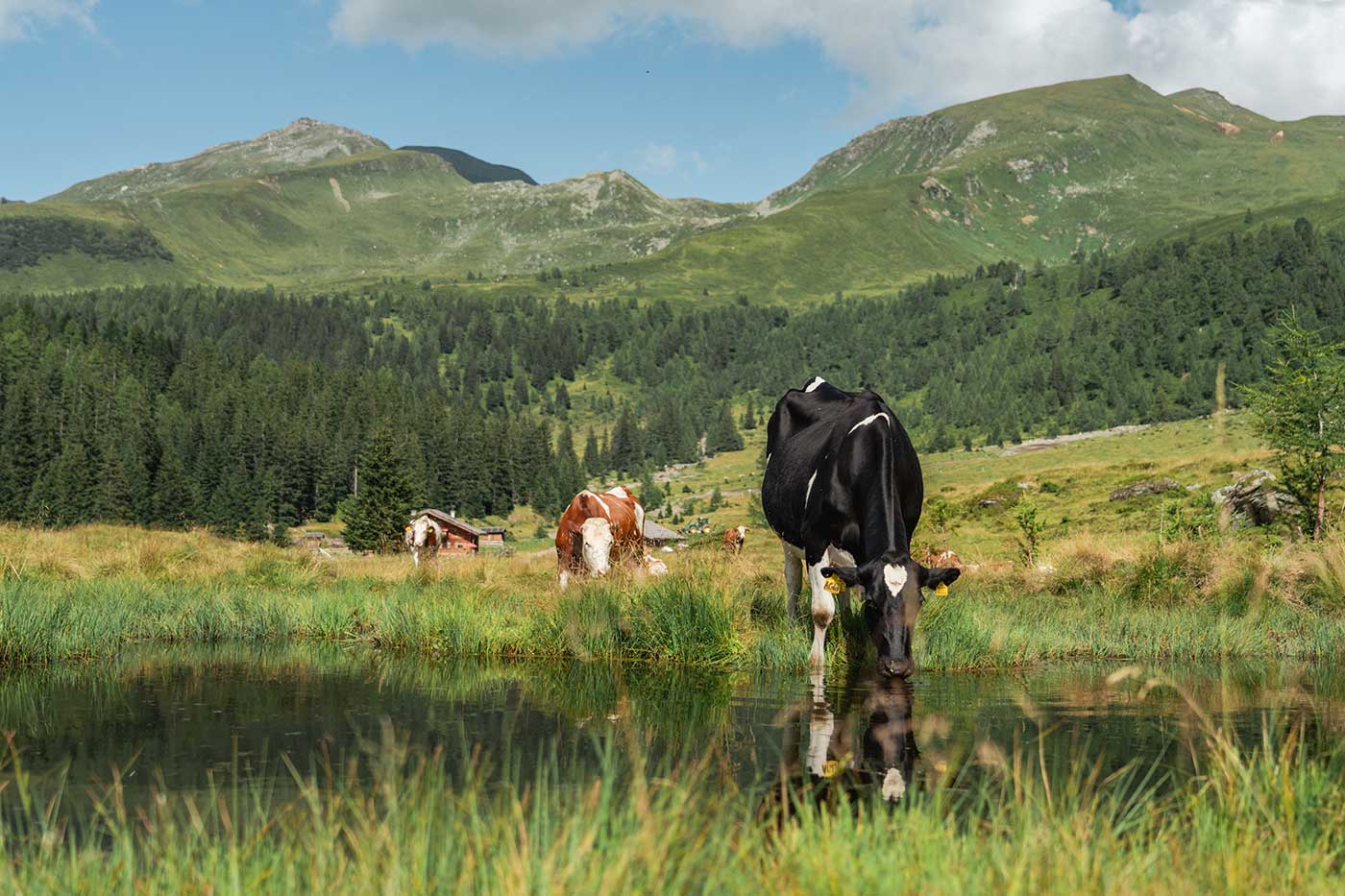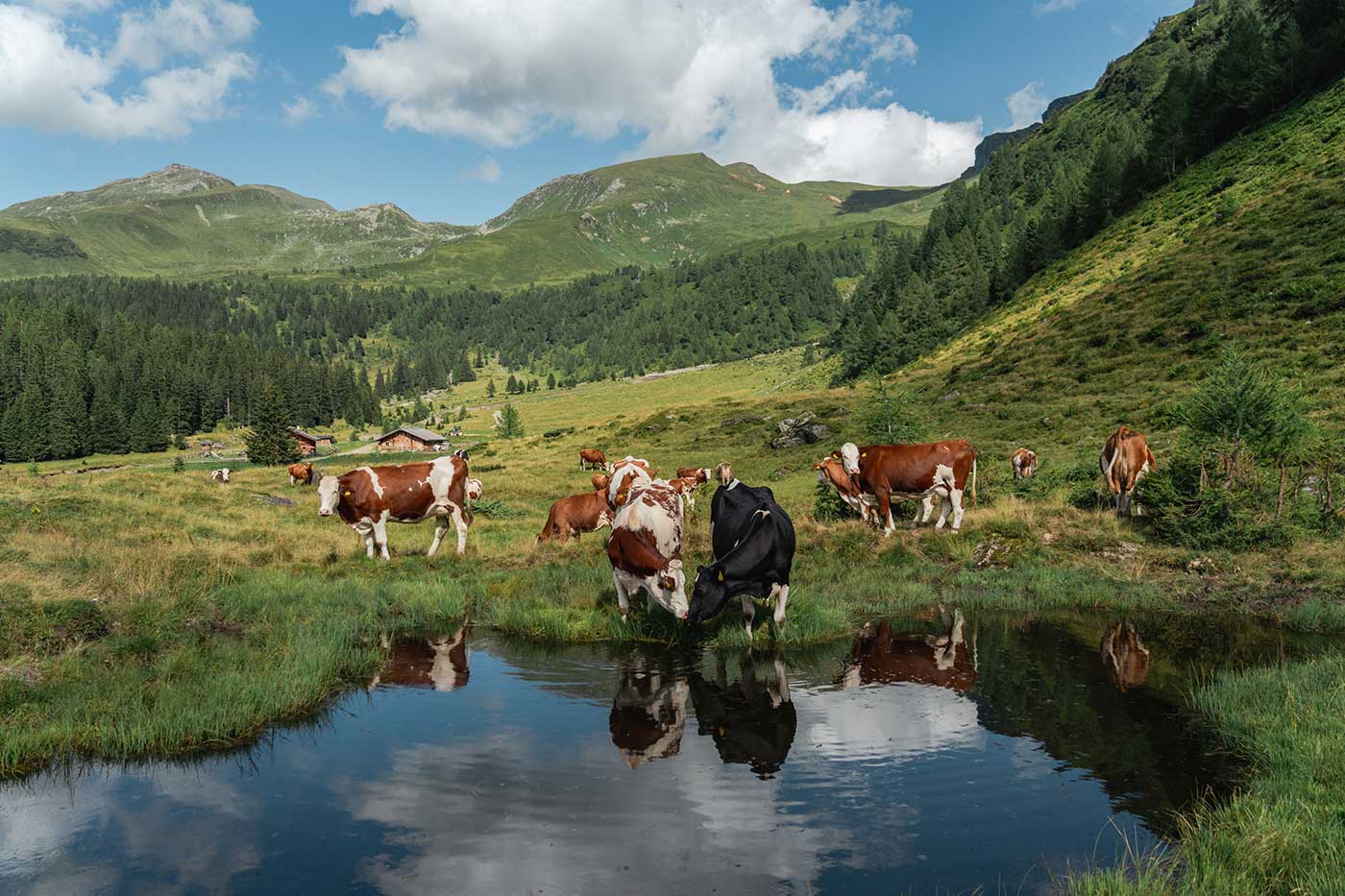 So anstrengend die Arbeit auch ist, es sind gerade die kleinen, stillen Augenblicke, die Sophie und Josef besonders schätzen. Wenn nach einem arbeitsreichen Tag Ruhe einkehrt, die Kühe friedlich auf der Weide stehen und die Sonne hinter den Bergen versinkt, genießen sie den Blick auf die umliegenden Berge und lauschen dem sanften Läuten der Kuhglocken. An ruhigeren Nachmittagen gönnt sich Sophie manchmal eine kleine Auszeit – sie wandert zum nahegelegenen Moorsee oder in den stillen Wald. Dort, zwischen Vogelgezwitscher und frischer Bergluft, tankt sie Kraft für die kommenden Tage.