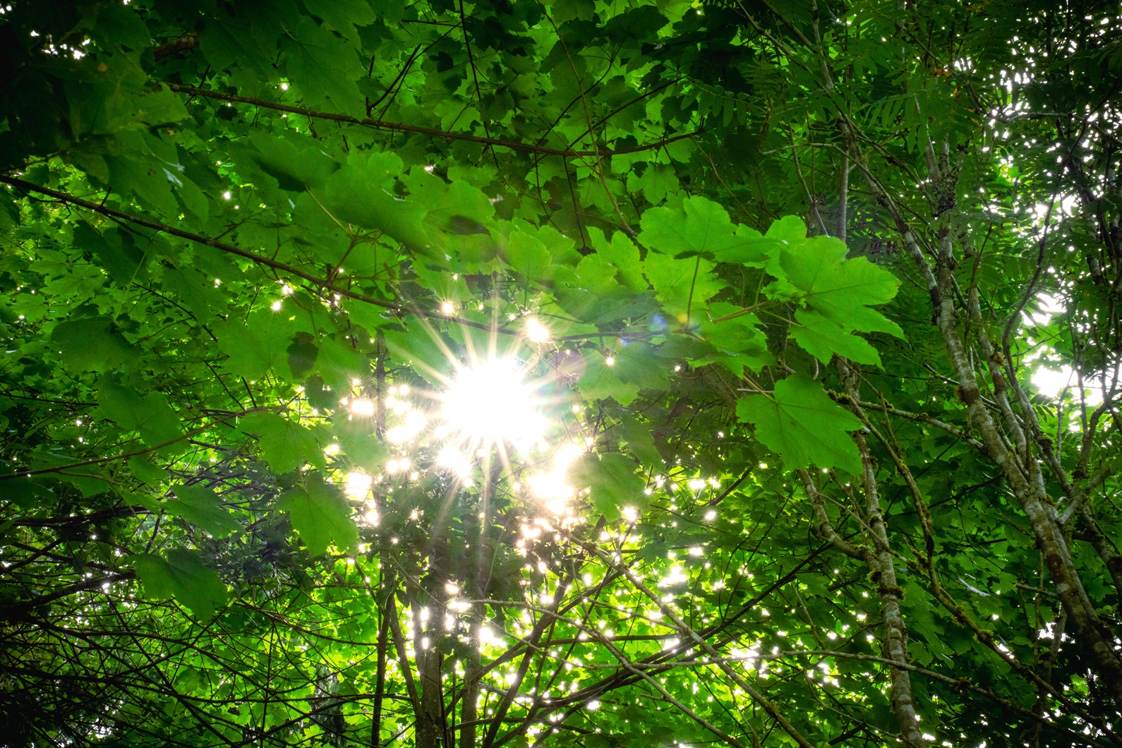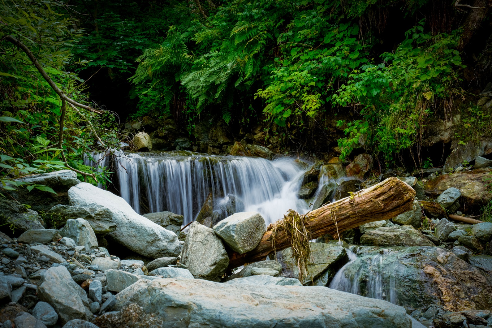Wild stream; wetland flora (mosses, ferns, and lichens), remnants of historical agricultural practices